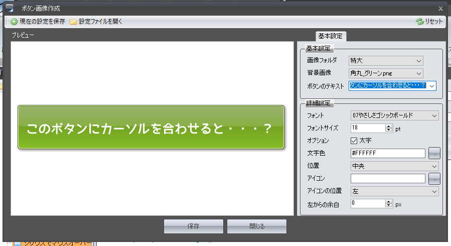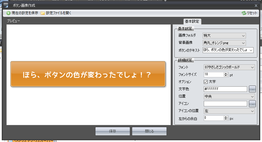 【ボタン画像】⇒【ボタン画像作成】の画面でボタン画像を2つ作成してください。