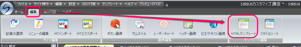 HTMLテンプレート編集画面で【トップページ】のタブを選択します。