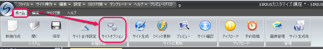 - 【全体設定】⇒【サイトの表示に関する設定】