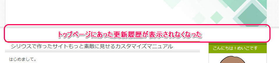 トップページの一番上に更新履歴が表示されるようになりました^^